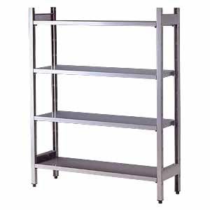 Стеллаж кухонный сборно-разборный с 4 сплошными полками, стойками из уголка, с креплением с помощью крючков изготовлен из нержавеющей стали AISI 304 с покрытием Scotch Brite. Равномерно распределённая нагрузка на полку - 200кг. Разборная конструкция стеллажа удобна при транспортировке и хранении данного оборудования. Стеллаж поставляется в разобранном виде.